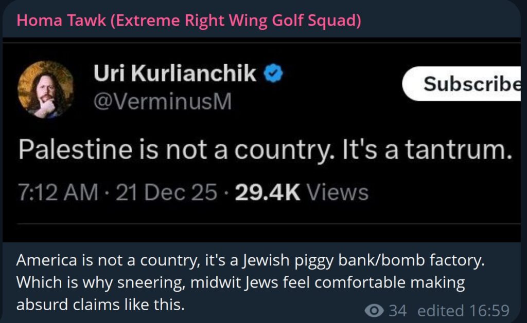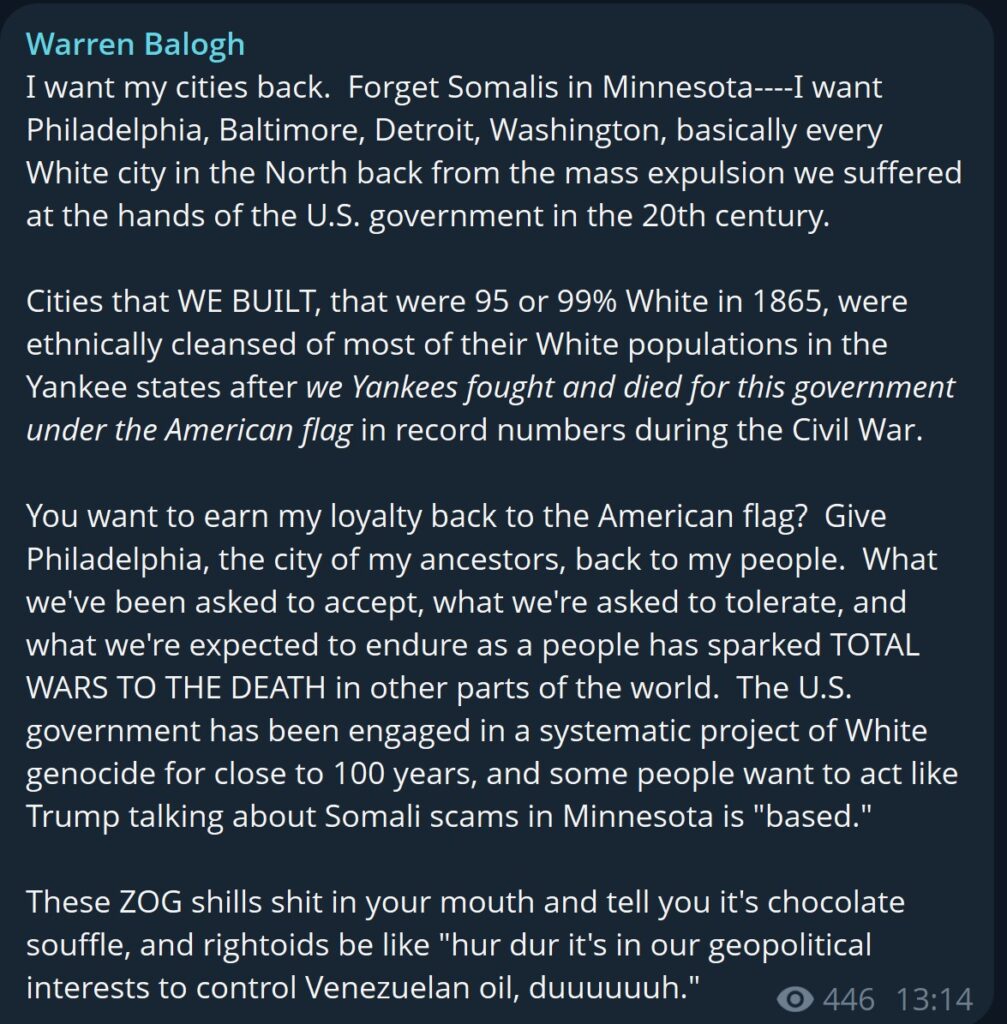 Warren Balogh posting on Telegram. Always install the Telegram app directly from Telegram’s website in order to bypass jew censorship of important political dissidents.