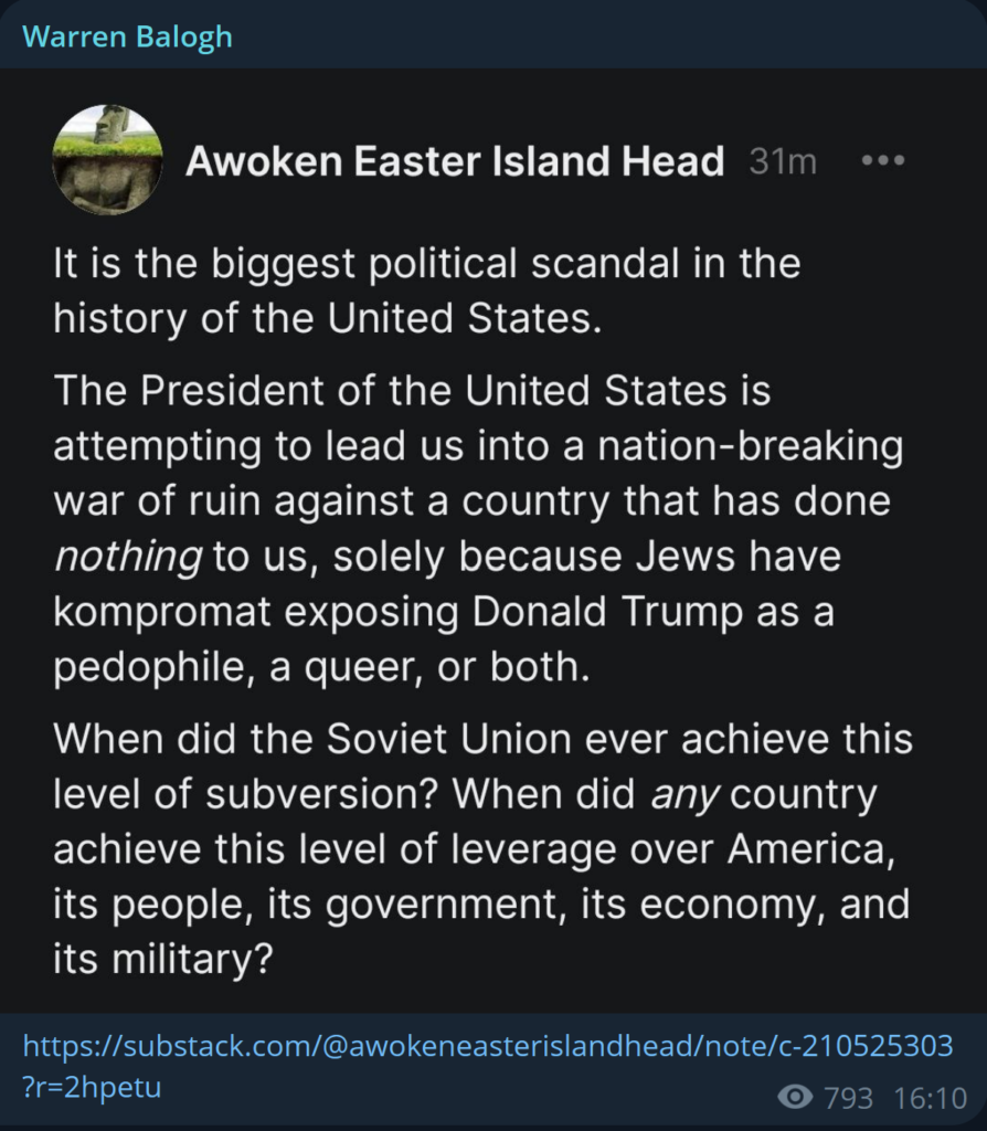For multiple years you couldn’t go 5 minutes without hearing about “Trump Russia collusion” and “Russian collusion” or “Russian meddling”. When in fact it has been jews and the genocidal, illegal, war-crimes-perpetrating state of Israel that is the real scandal.