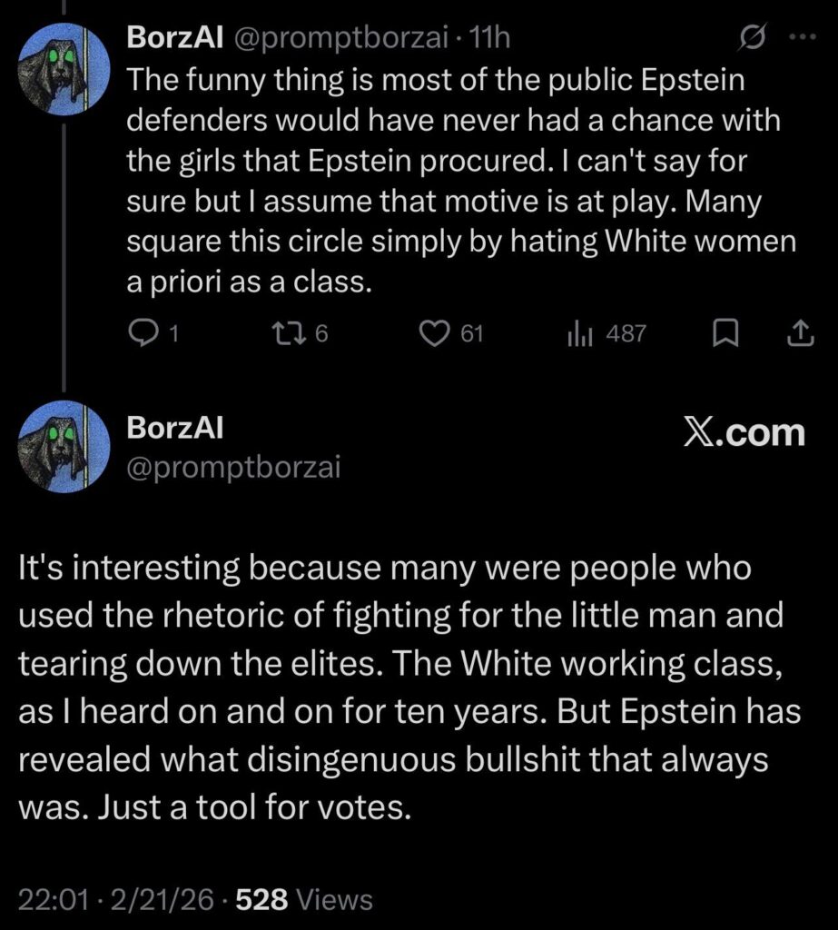 Borzoi did a blowout thread on the ‘right wing’ a.k.a. fake populist jew-op response to Epstein: